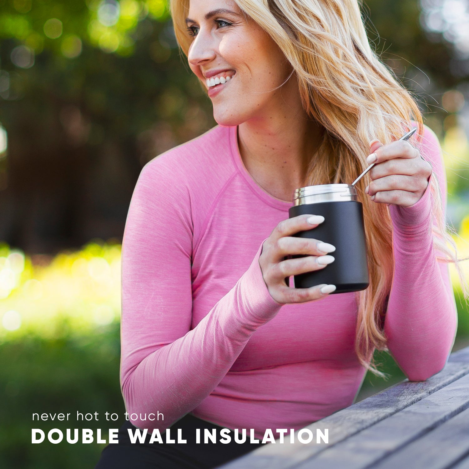 Double Wall Insulation:?This wide-mouth reusable snack container will never sweat or be hot to the touch. The lid is double-walled for complete insulation.