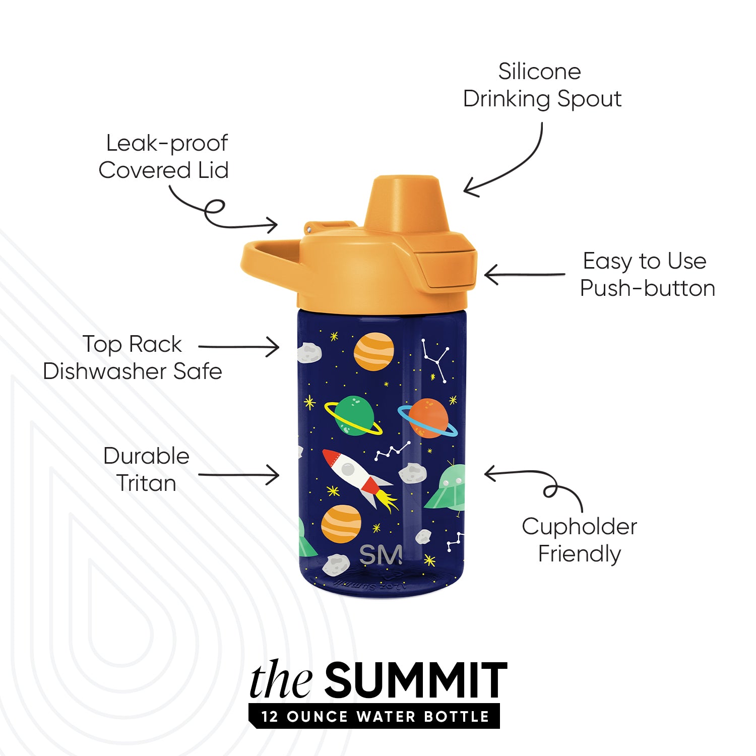 Tags: bottle, color_name:Outer Space, color_OTS, colorCollections:pattern, colorfamily:Blue, hydration, kids, kids-bottles, kids:ots, lid:straw, Material:Tritan Plastic, Not Personalization, size:12oz, smp:smp-kids-plastic-summit, summit, swatchcategory-pattern, volume:12oz