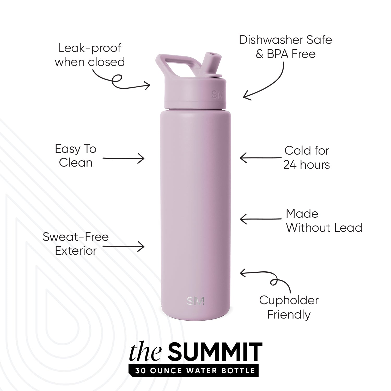 Tags: attribute:Cupholder Compatible, bottle, catalog:WHOLESALE, color_LVD, color_name:Lavender Mist, colorCollections:solid, colorfamily:Purple, hydration, lid:straw, Not Personalization, size_SM-30, size:30oz, smp:smp-summit-water-bottle-with-straw-lid, solid:lvd, summit, swatchcategory-solid, volume:30oz