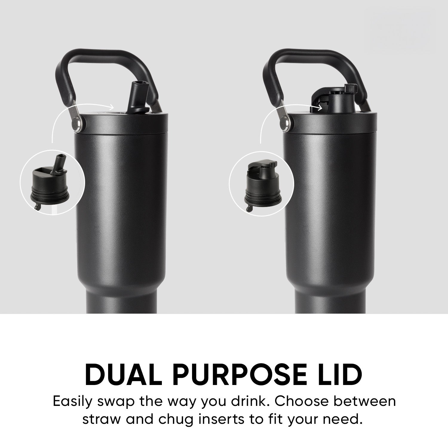 Multi-Use Leakproof Lid: Featuring two interchangeable leakproof lid pieces. you can choose your preferred sipping method – straw or chug – and easily swap out the sipping component within the lid at any time.