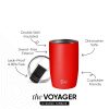 Cupholder Friendly: The Voyager’s unique shape makes it the perfect reusable travel mug as it fits in most cars’ cup holders.